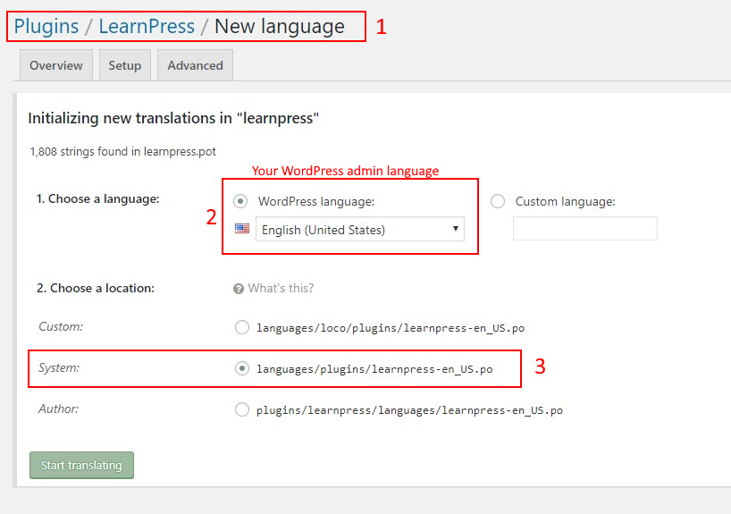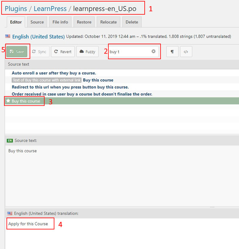 ThanksHi, just localize LearnPress plugin with Loco Translate. Choose “System” location for your files when creating new one. Thanks