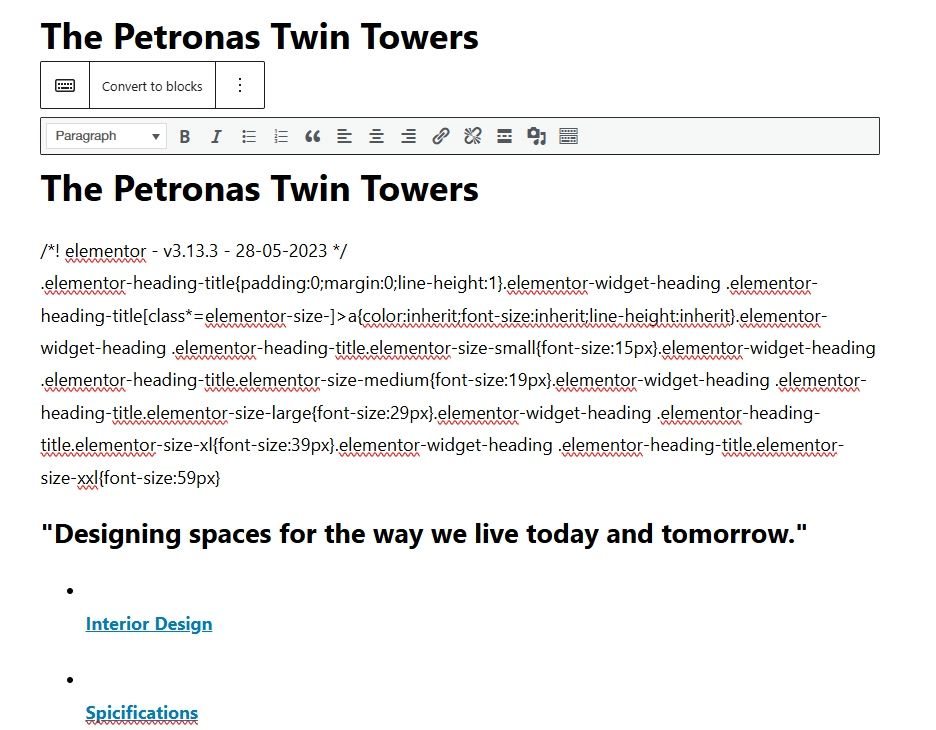 I have just gone into one of the projects to see how they are put together and there is some code within this page relating to Elementor – almost as if something is missing