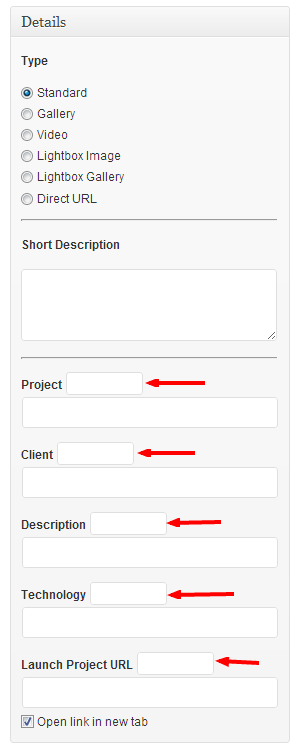 .blog-posts .post .entry-meta { display: none; }Use the [lightbox_image] shortcode for lightbox image type portfolio item to open in a lightbox, like this: