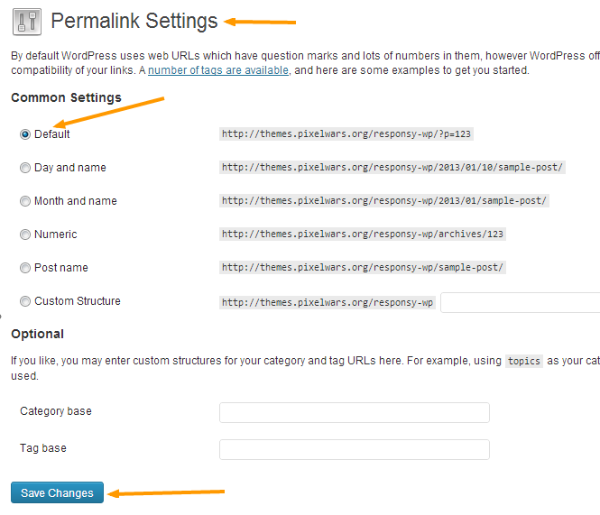 – Go back to Permalinks and select Post name option then save.
