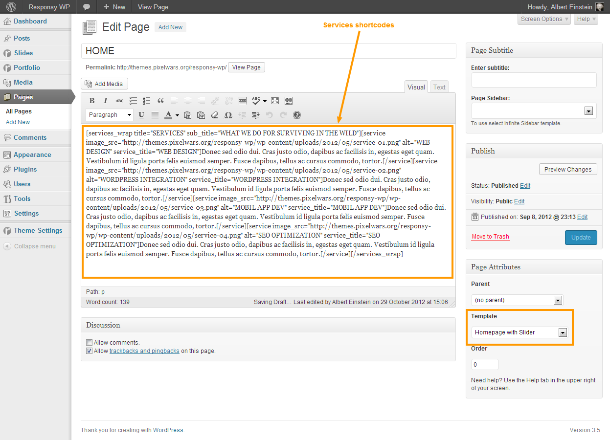 Services Shortcodes: