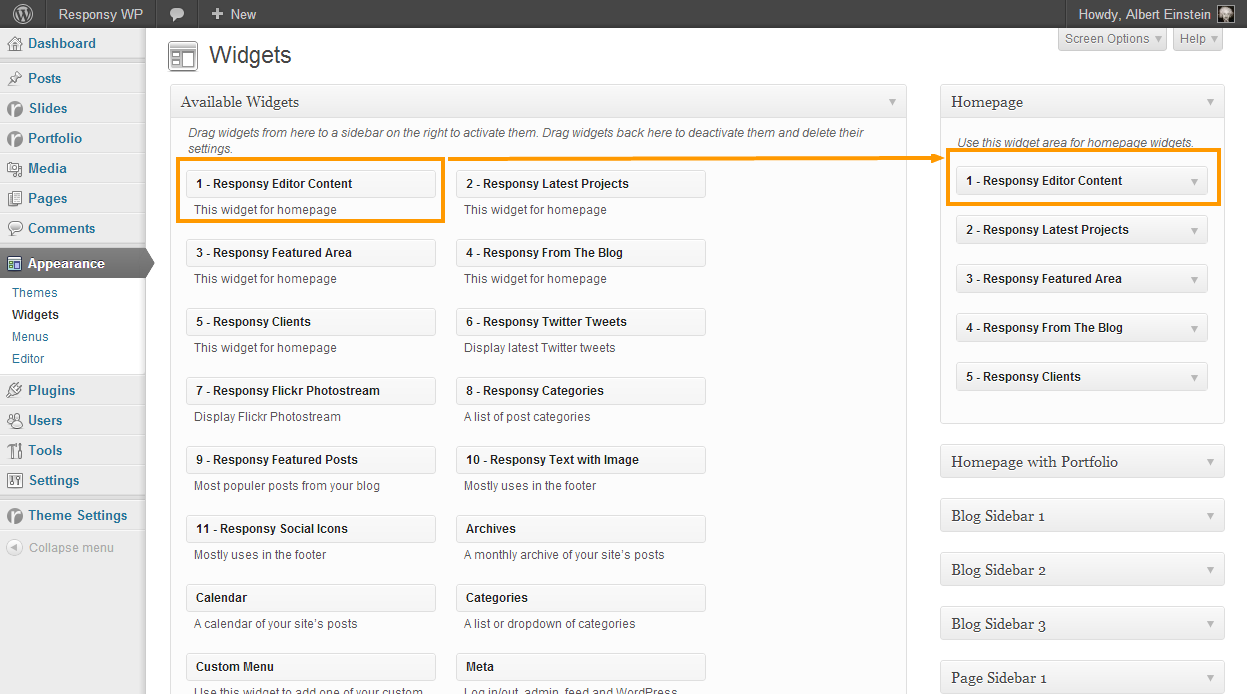 – Don’t forget to drag the Editor Content widget to its widget location.